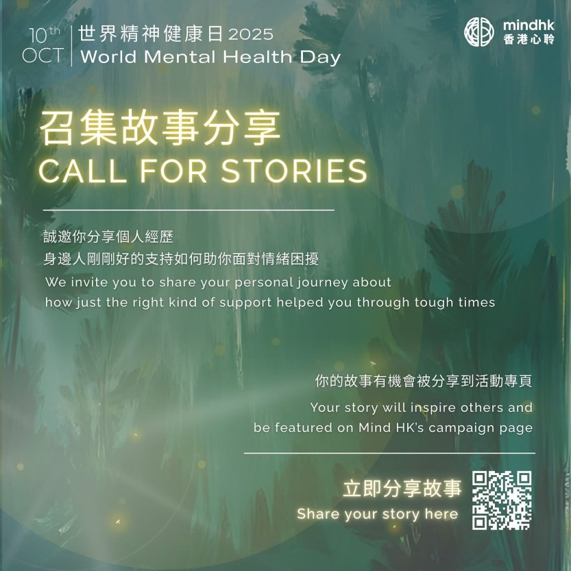 Share your stories of how just the right support manifested in your life when you needed it the most with Mind HK this World Mental Health Day (10 Oct)! Use the bar code on the posters below to find out more!